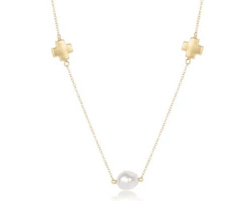 17” Choker Signature Cross Admire Simplicity Chain Gold - Pearl
