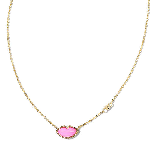 Kendra Scott Lips Gold Pendant Necklace in Hot Pink Mother of Pearl