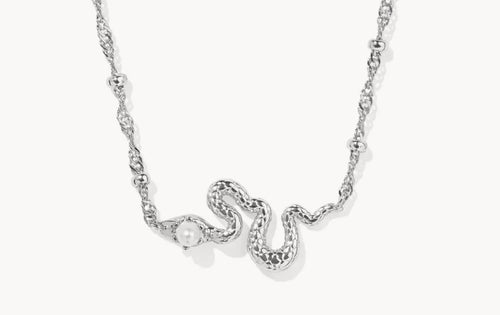 Kendra Scott Lyle Silver Snake Short Pendant Necklace in White Pearl