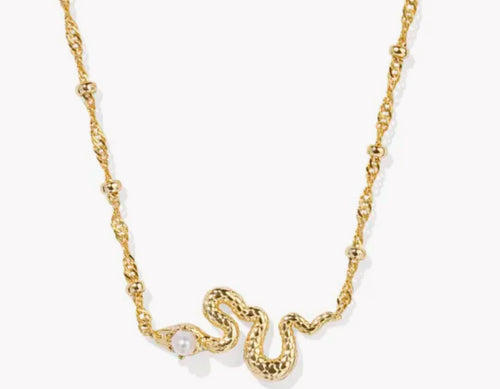 Kendra Scott Lyle Gold Snake Short Pendant Necklace in White Pearl