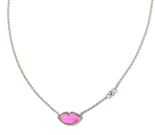 Kendra Scott Lips Silver Pendant Necklace in Hot Pink Mother of Pearl