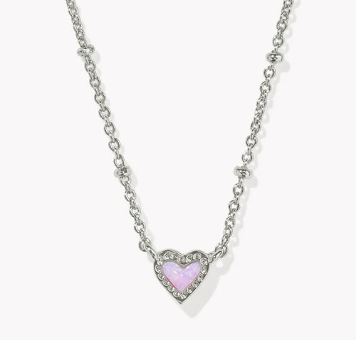Kendra Scott Mini Ari Heart Rhodium Satellite Short Pendant Necklace in Bubblegum Pink Opal