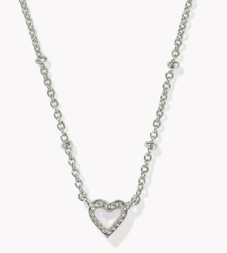Kendra Scott Mini Ari Heart Rhodium Satellite Short Pendant Necklace in Ivory Mother of Pearl