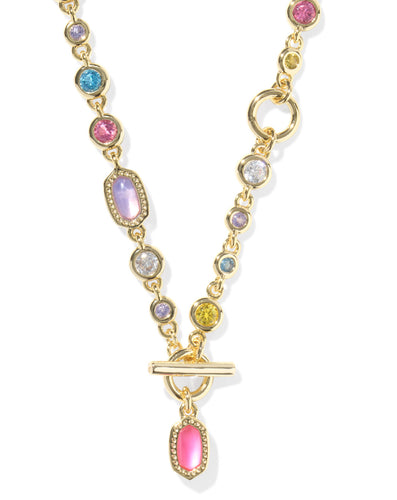 Kendra Scott Mini Elisa Gold Satellite Pendant Necklace in Azalea Illusion