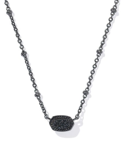 Kendra Scott Mini Elisa Gunmetal Satellite Pendant Necklace in Black Drusy
