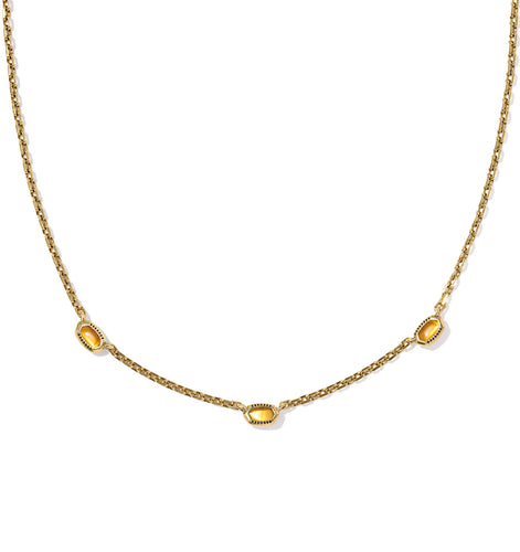 Kendra Scott Mini Elisa Vintage Gold Satellite Necklace in Marbled Amber Illusion