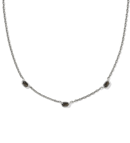 Kendra Scott Mini Elisa Vintage Silver Three Stone Necklace in Golden Obsidian