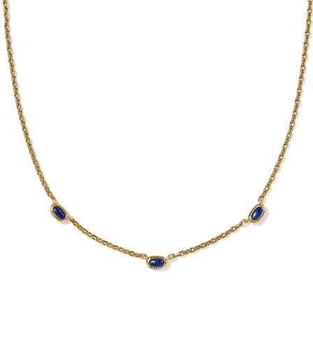 Kendra Scott Mini Elisa Vintage Gold Three Stone Necklace in Blue Lapis