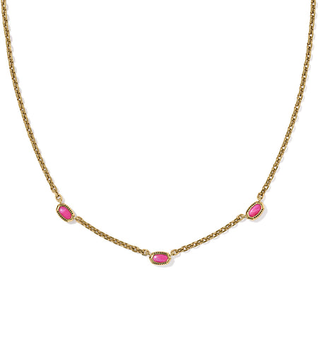 Kendra Scott Mini Elisa Vintage Gold Three Stone Necklace in Dark Fuchsia