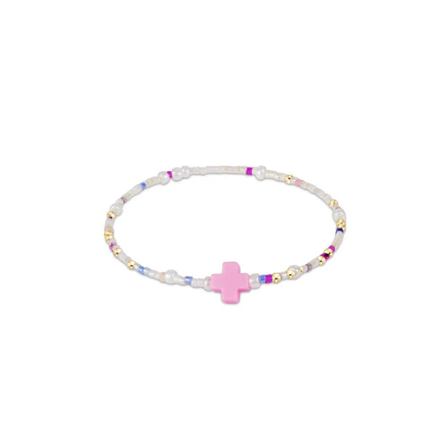 EGIRL Signature Cross Small Gold Pattern 2mm Bead Bracelet - Pink