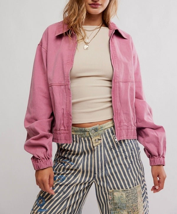 So essential for any-season layering, this cotton twill jacket from We The Free is featured in the perfect bomber-inspired style with a zip-front closure for an effortless addition to any outfit.