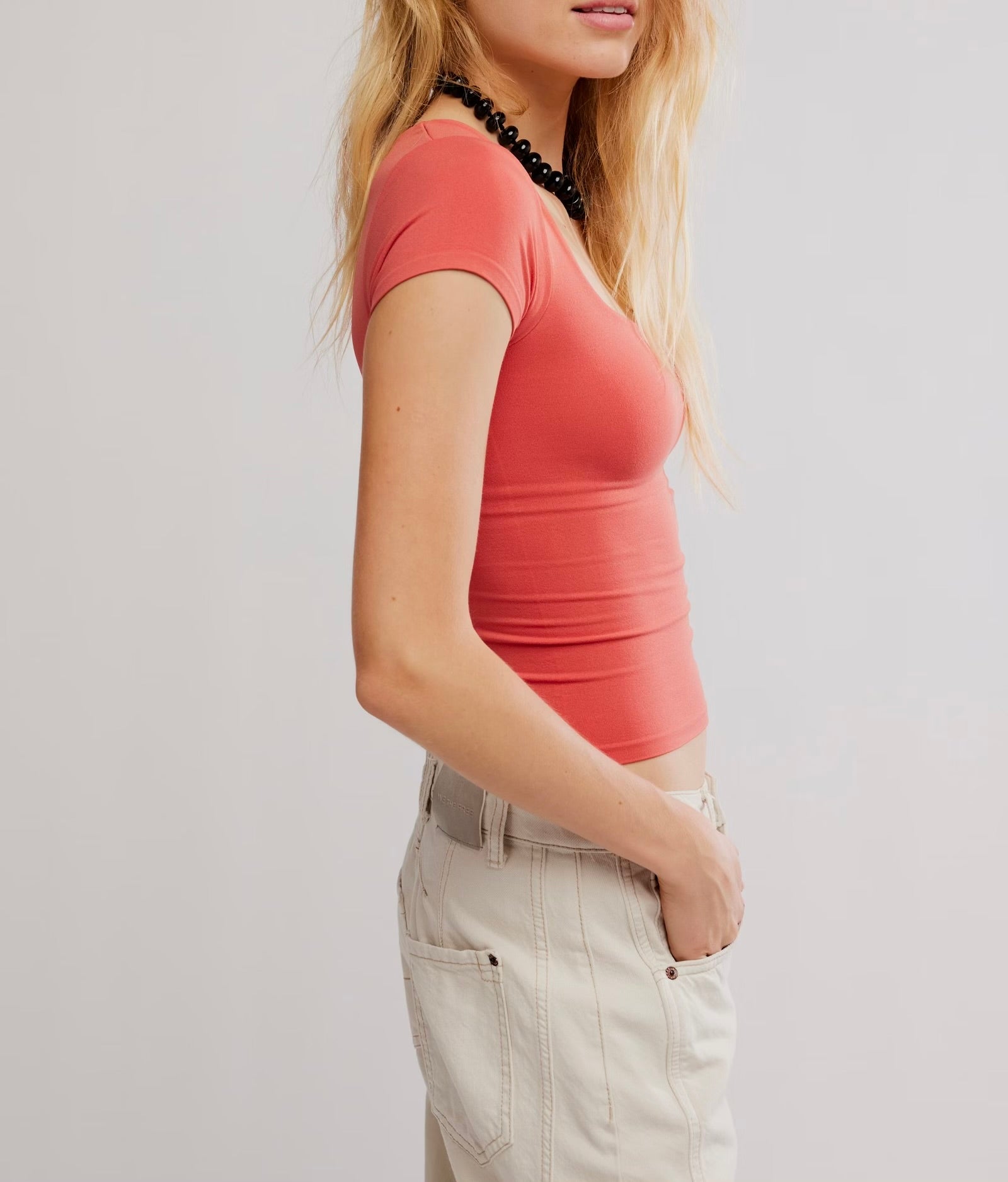 A new addition to your favorite seamless collection, this ultra-soft tee is featured in a slim-fitting silhouette with a square neckline and cap-inspired sleeves.