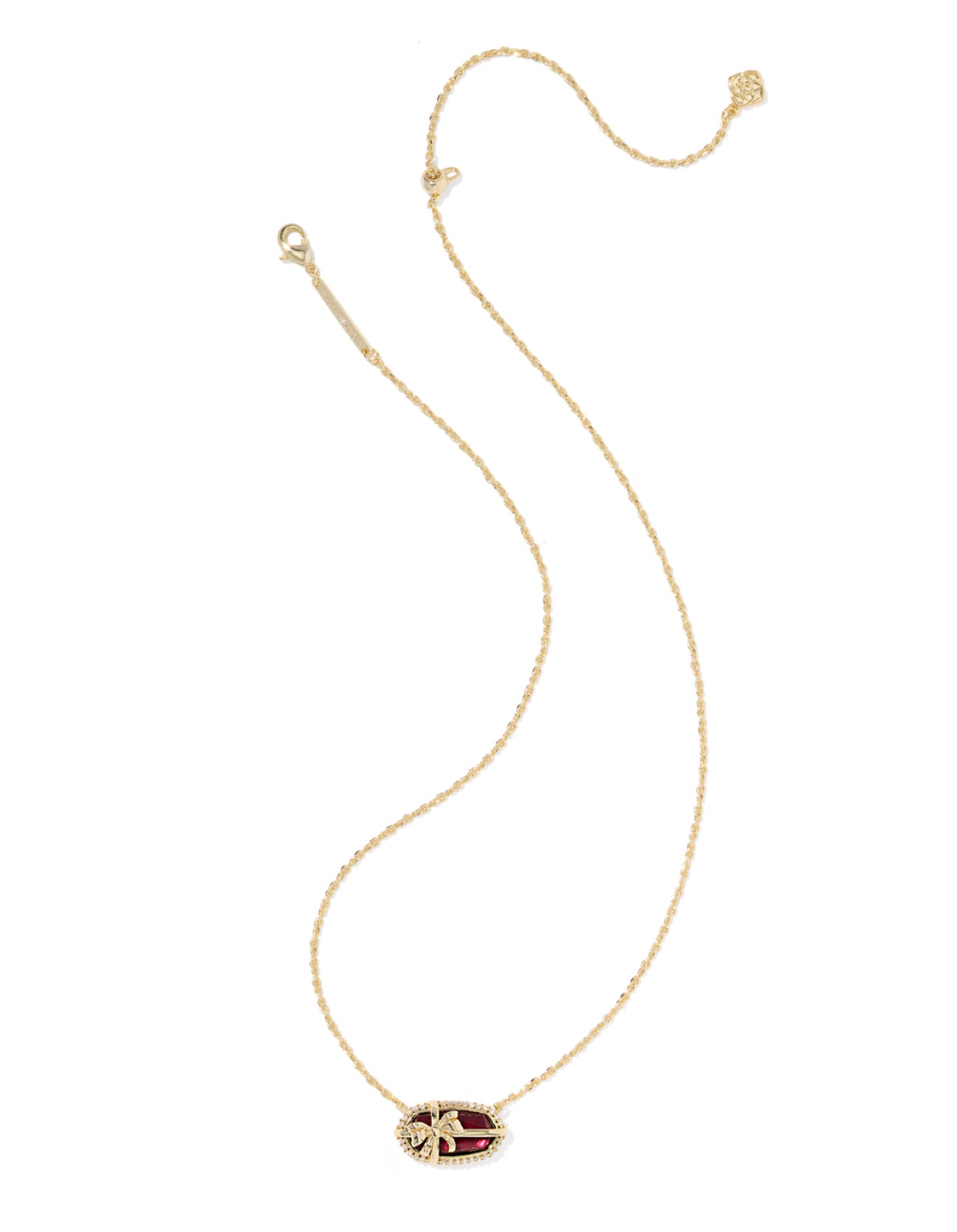 Kendra Scott Elisa Bow Gold Pendant Necklace in Dark Burgundy Illusion
