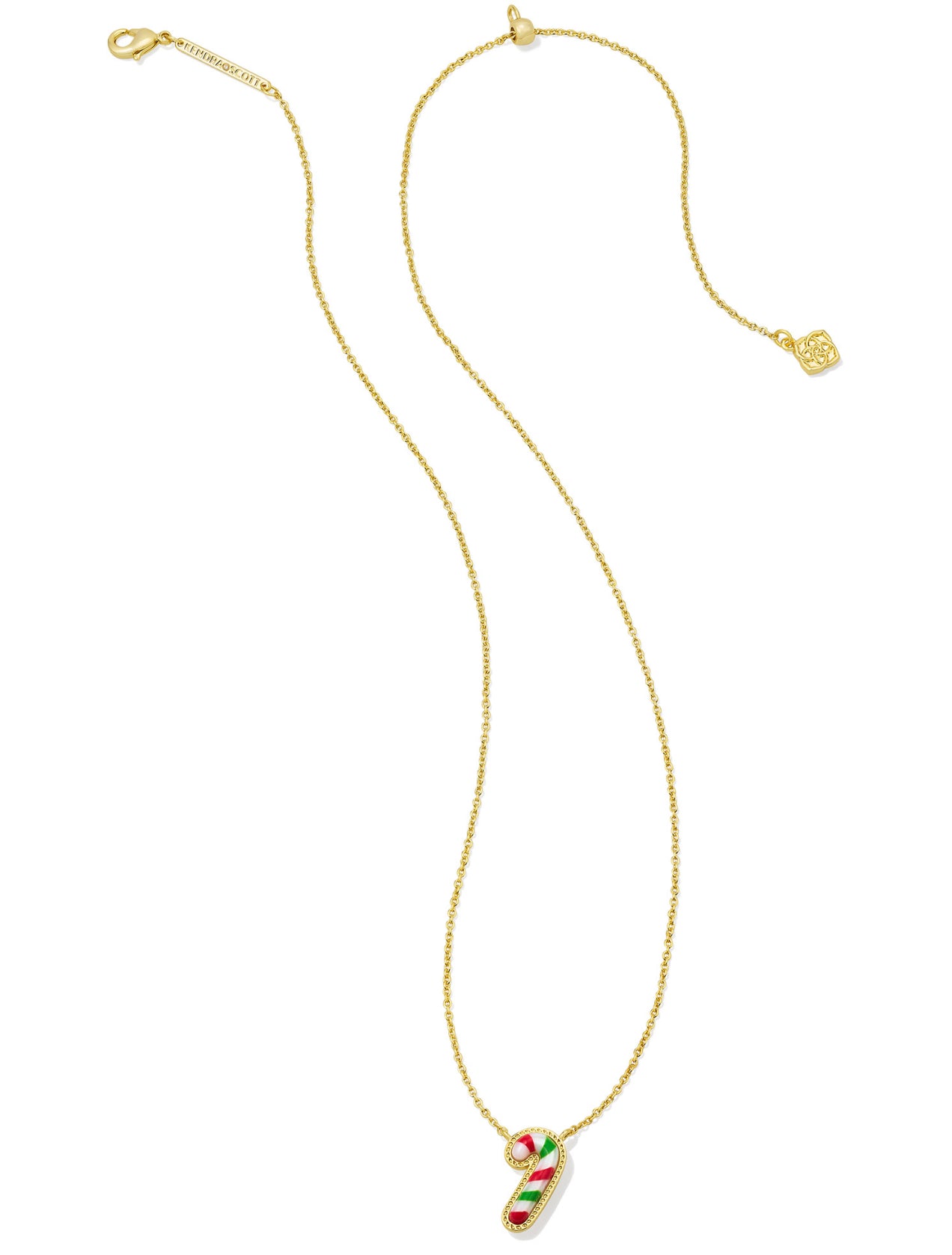 Kendra Scott Gold Candy Cane Pendant Necklace in Red & Green Mix