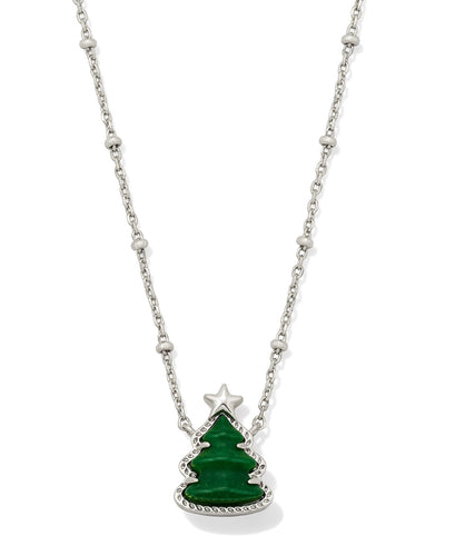Kendra Scott Holiday Tree Silver Pendant Necklace in Green Quartzite