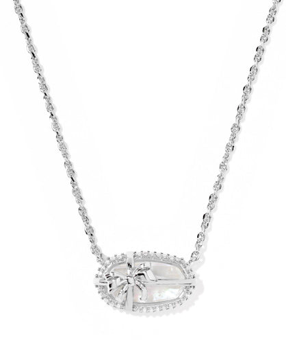Kendra Scott Elisa Bow Silver Pendant Necklace in Ivory Illusion
