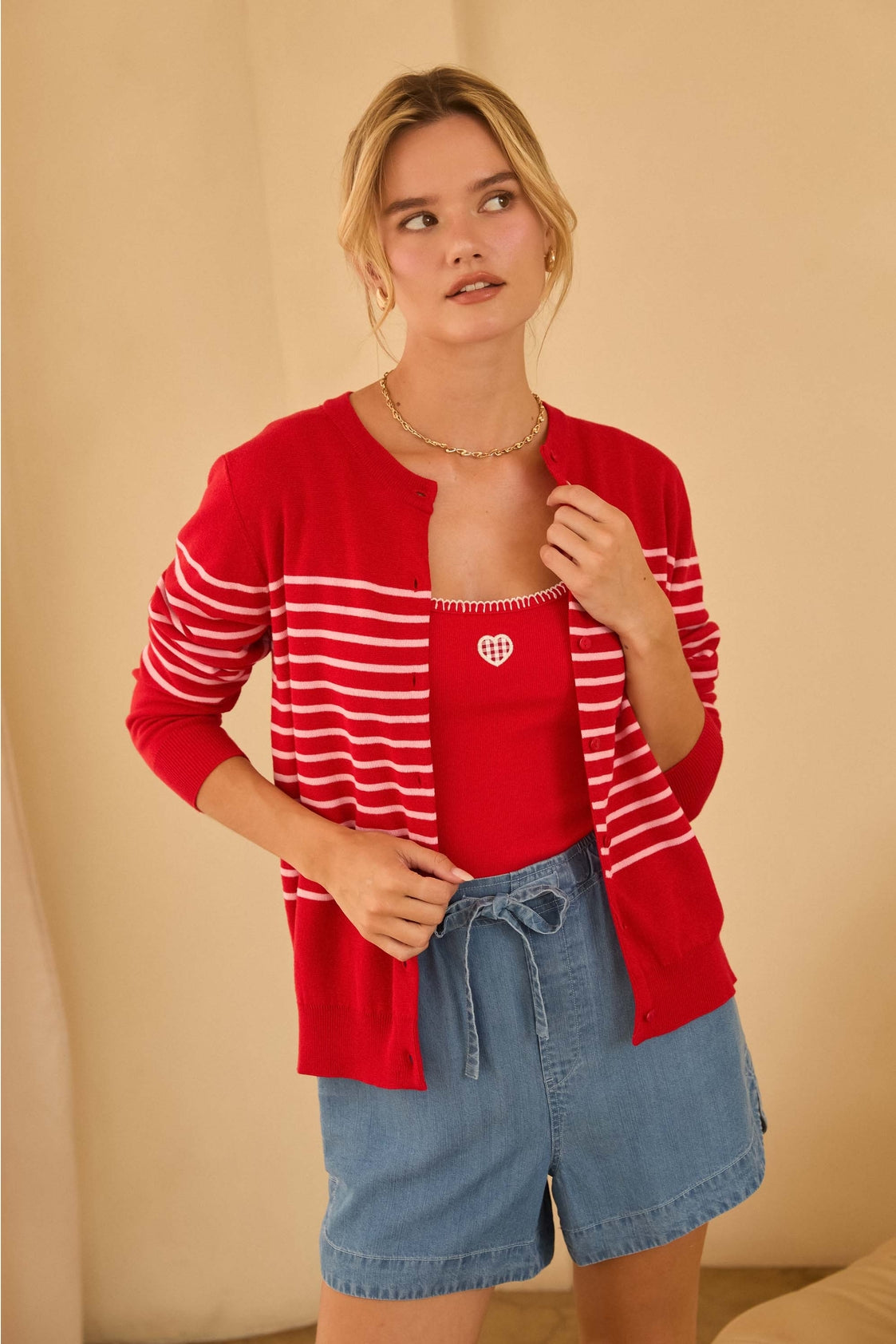 Classic comfort meets casual style in this striped button-down cardigan. Crafted with a soft knit, it features timeless stripes and a flattering button-front design for effortless layering. Perfect over a tee or dress, it adds a cozy yet polished touch to any outfit.