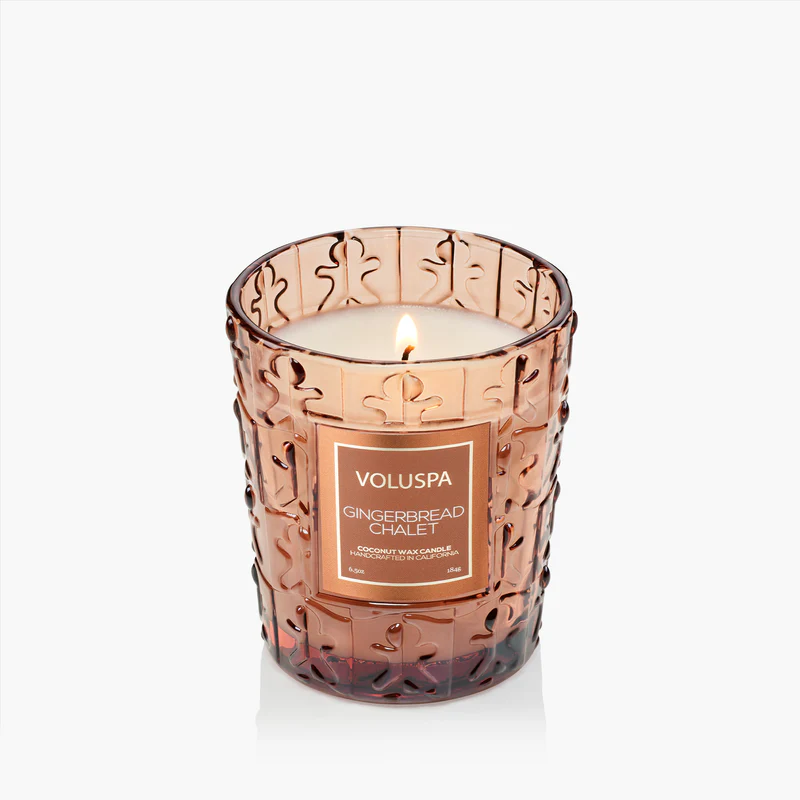 Seek shelter from the cold and step into the Gingerbread Chalet, where the fires burning, drinks are serving and notes of nostalgia and the holidays fill the air. An ambiance enveloped in sugar-dusted ginger, nestled upon layers of cinnamon sticks, crushed clove and smooth tonka bean. Allow its magical essence to fill the air, sprinkling notes of glowing comfort and delight. Consider this your invitation to check into Voluspa's Gingerbread Chalet.