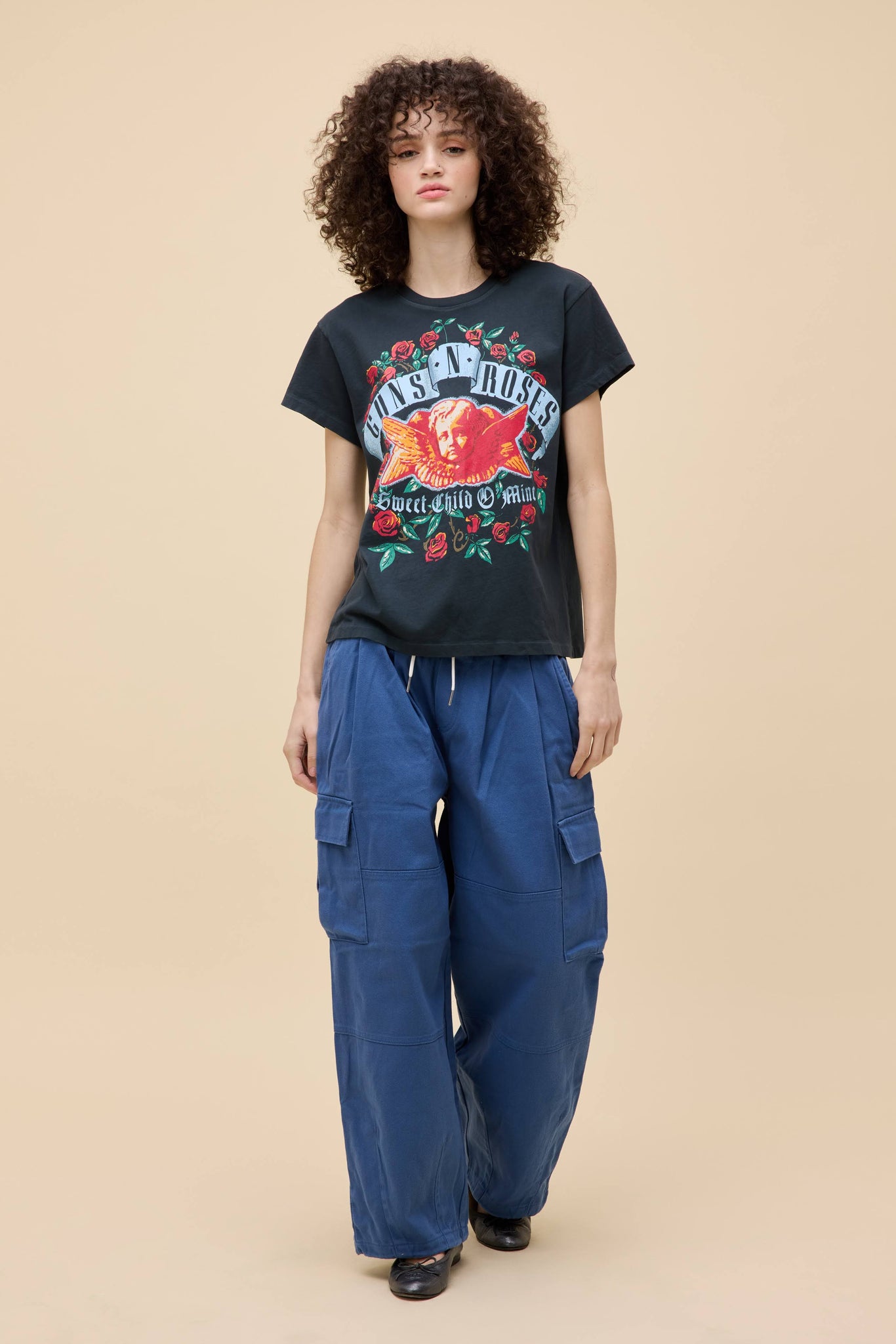 From a riff that was almost left behind to a track that held the top of the charts, "Sweet Child o' Mine" invigorated the late 80s leaving nothing the same for Guns N' Roses thereafter. Highlighting the hit, this Tour Tee is stamped with the group's identifiable iconography making this a sure classic for GNR collectors.