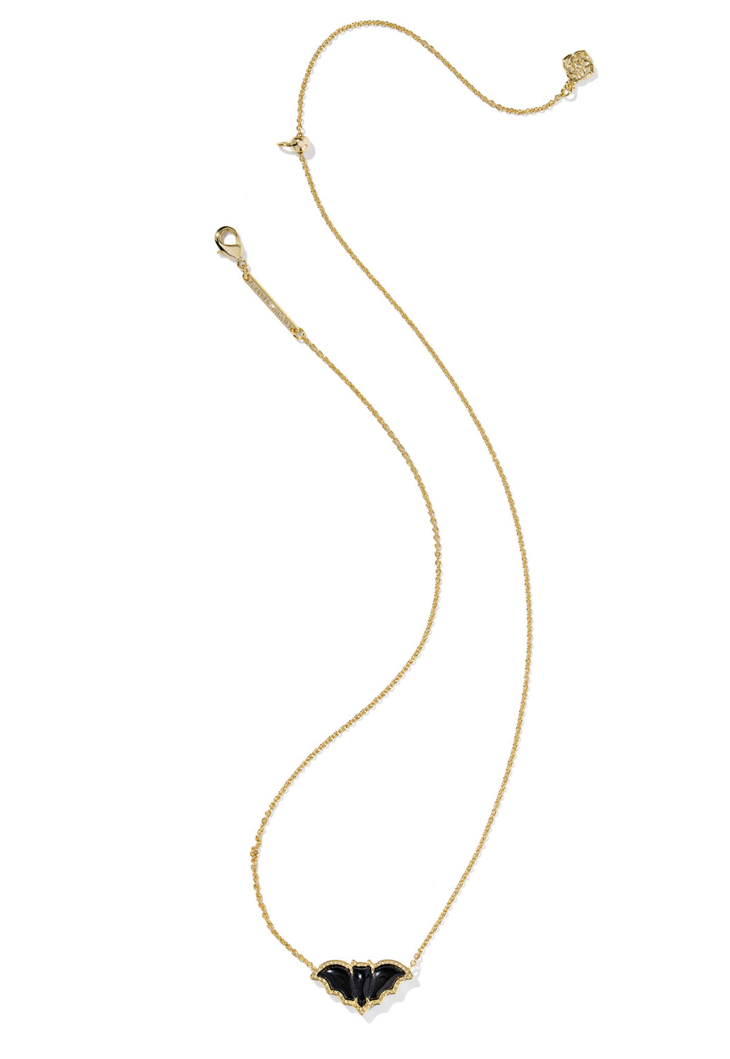 Kendra Scott Bat Gold Short Pendant Necklace in Golden Obsidian
