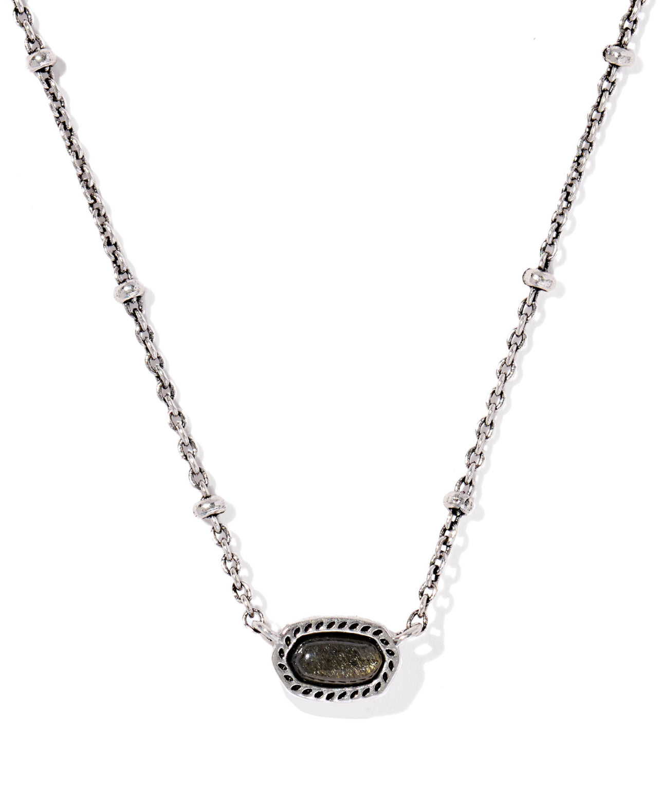 Kendra Scott Mini Elisa Vintage Silver Satellite Necklace in Golden Obsidian