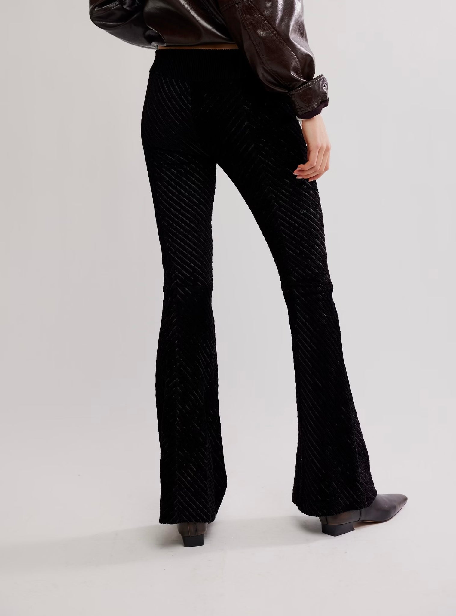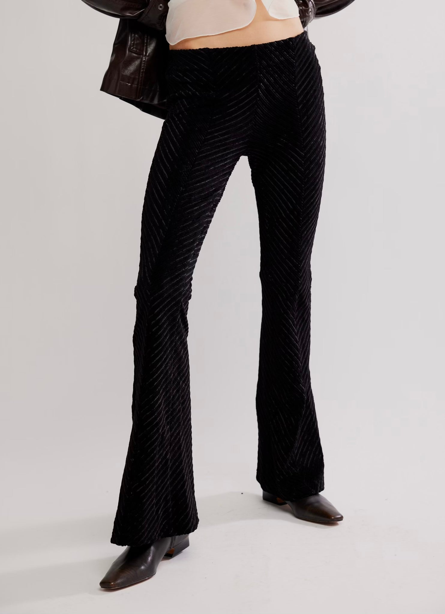 A textured iteration of our iconic Penny silhouette, these pants feature an effortless pull-on design, flattering flare fit, and chevron velvet finish for added dimension.