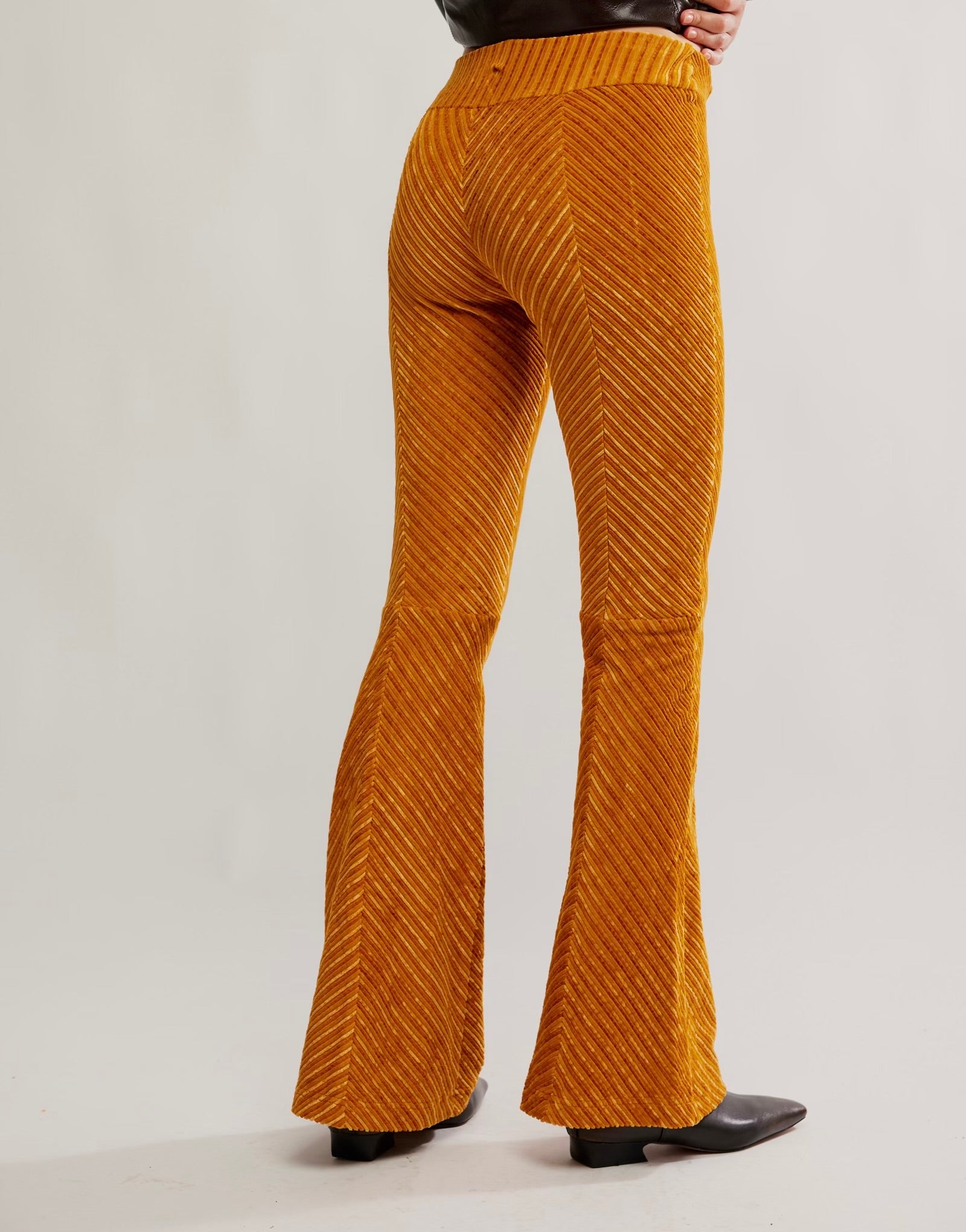 A textured iteration of our iconic Penny silhouette, these pants feature an effortless pull-on design, flattering flare fit, and chevron velvet finish for added dimension.