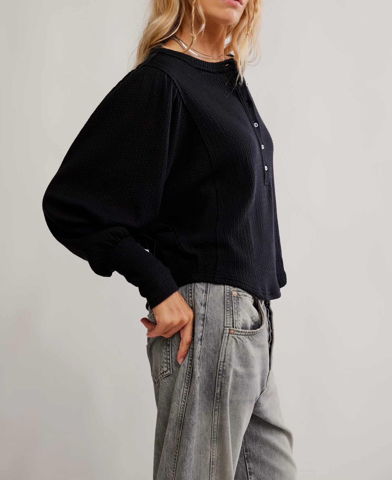 Voluminous sleeves instantly elevate this knit henley from We The Free, giving it that crafty detail you can only find here.